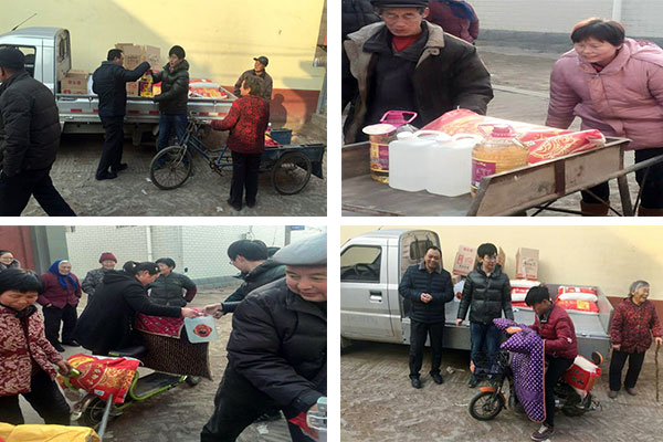 李經(jīng)理說:以前生活條件不好,有些事想做也做不了,現(xiàn)在生活富裕了,就想盡自己的綿薄之力為家鄉(xiāng)的父老鄉(xiāng)親做點(diǎn)實事。雖然自己常年在外地,回家的次數(shù)不多,但時時刻刻記得家鄉(xiāng)的父老鄉(xiāng)親,雖然東西不多,但希望能讓叔叔、大爺、大嬸們開開心心過個幸福年!他還表示,關(guān)心老人就是關(guān)心多年后的自己,尊老愛老的事以后還會通過各種方式做下去!